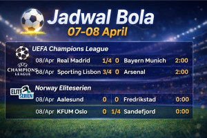 Read MoreJadwal Bola Hari Ini 07 – 08 April 2026: Liga Champions hingga Eliteserien Norwegia