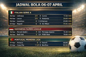 Read MoreJadwal Bola Hari Ini 06 – 07 April 2026: Laga Seru dari Serie A, Liga 1 Indonesia, hingga Primeira Liga