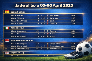 Read MoreJadwal Bola Hari Ini 05 – 06 April 2026: Duel Panas dari Eropa hingga Indonesia