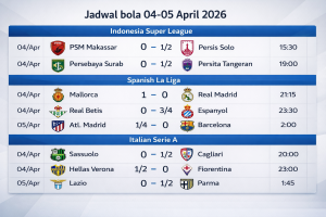 Read MoreJadwal Bola Hari Ini 04–05 April 2026: Duel Panas dari Indonesia, Spanyol, hingga Italia