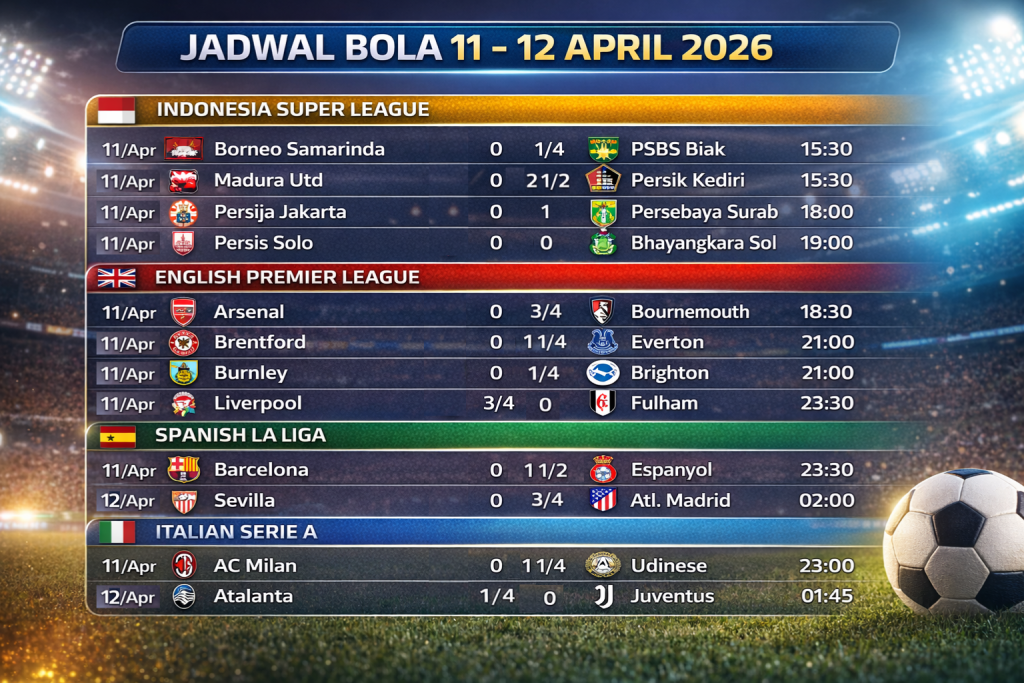 Jadwal Bola Hari Ini 11 – 12 April 2026: Big Match dari Liga Top Dunia
