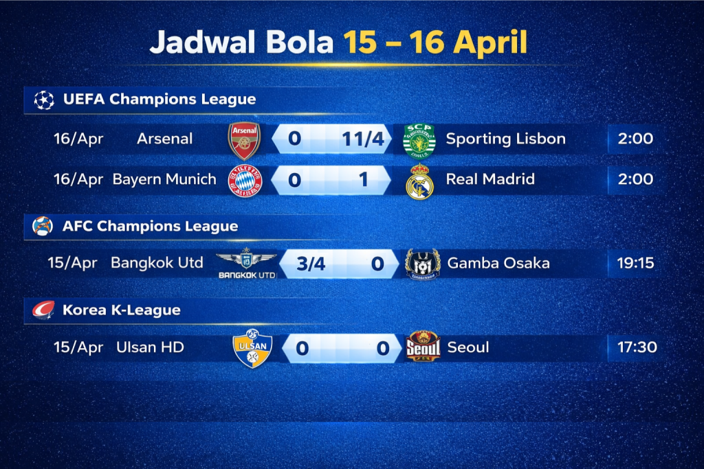 Jadwal Bola Hari Ini 15 – 16 April 2026: Liga Champions hingga AFC Champions League