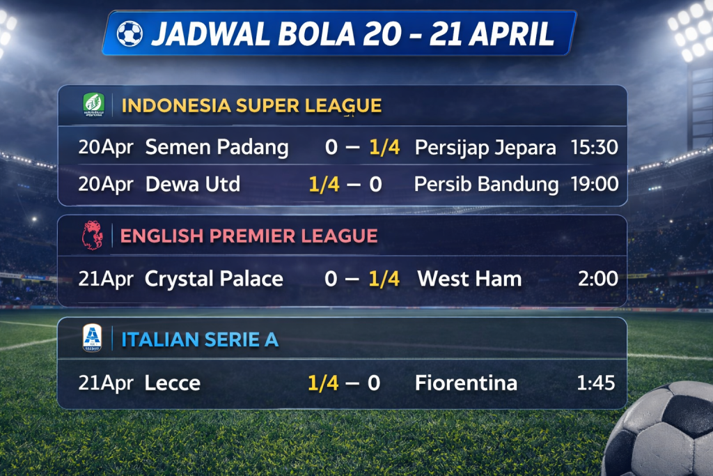 Jadwal Bola Hari Ini 20 – 21 April 2026: Liga Indonesia, Premier League, dan Serie A